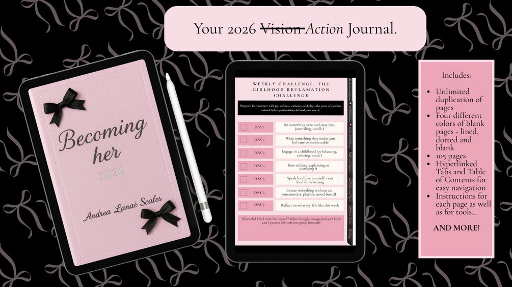 Becoming Her: 2026 Edition is a digital guided planner + reflection system designed for women who want structure without burnout, growth without pressure, and clarity without rigidity.